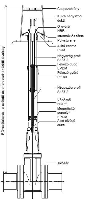 A földbe kerülő elzáró szerelvény (pl. tolózár) kezelésére szolgál. Három részből áll: szárhosszabbítóból, védőcsőből, csapszekrényből.